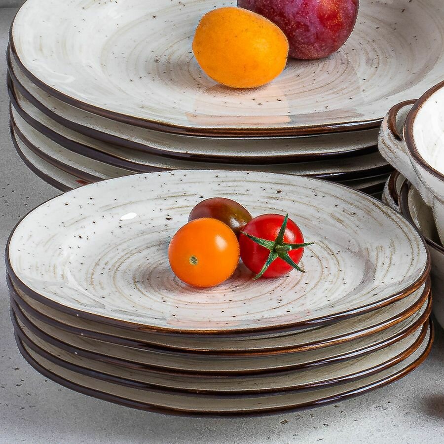 | Комплектация | 4 глубоких тарелки 350 мл, диаметр 22 см; 4 плоских тарелки диаметр 22,5 см; 1 большой салатник 1,2 л и 1 маленький салатник 750 мл |