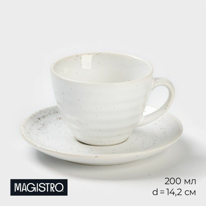 Чайная пара фарфоровая для чая и кофе, кофейная пара Magistro Urban, чашка 200 мл, блюдце d=14,2 см