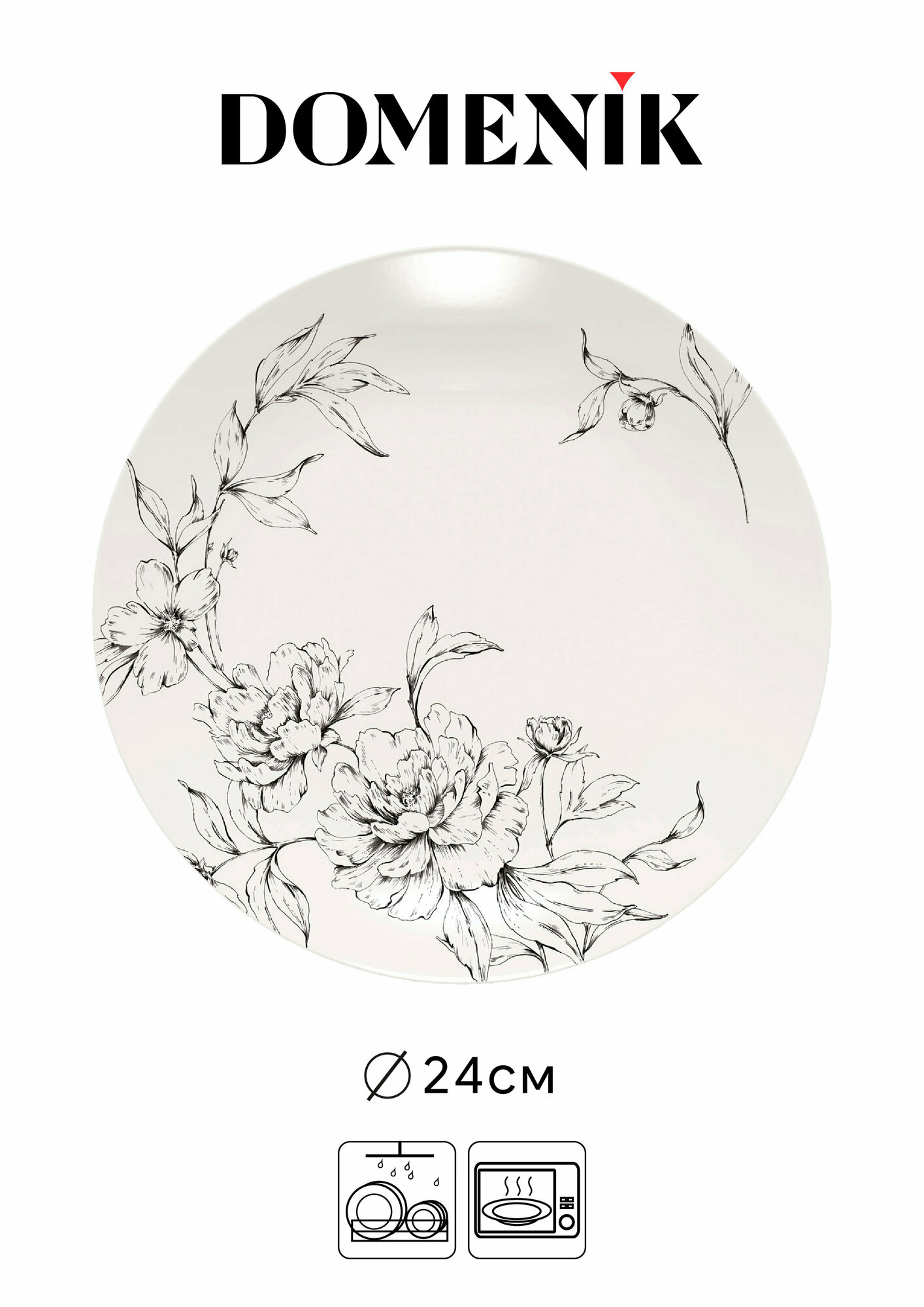 Тарелка Domenik обеденная PEONIA 24см, 1 штука, фарфор с рисунком интересное: