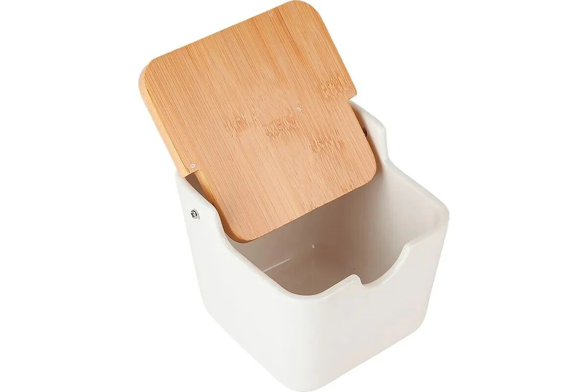 Солонка с ложкой "Naturel", фарфоровая с бамбуковой крышкой, 280 мл, Nouvelle