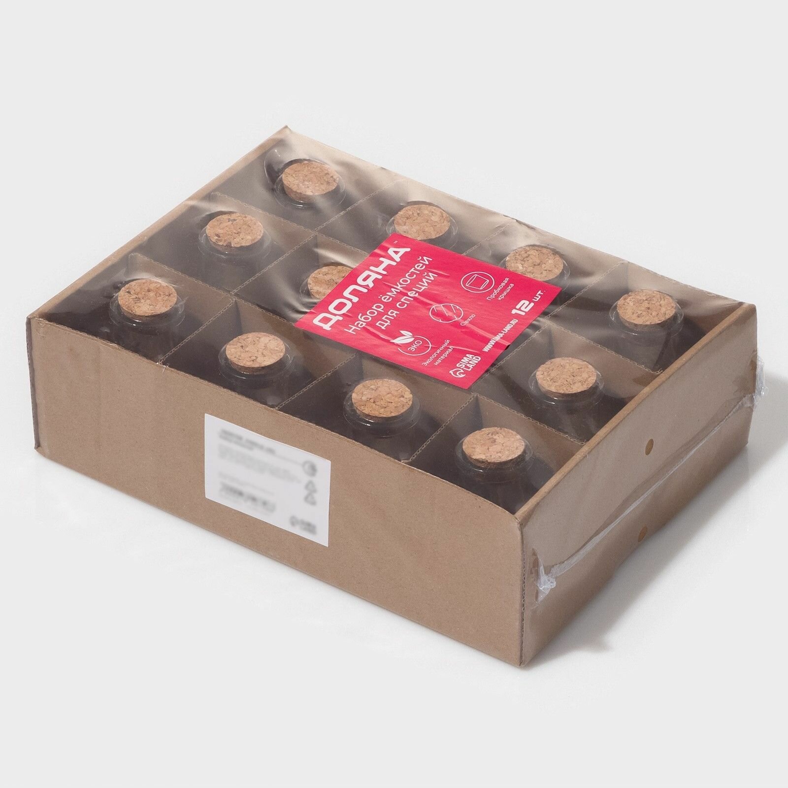 Купить Набор баночек стеклянных для специй с пробковой крышкой Доляна Парфе , 50 мл, 5,5 5,5 7 см, 12 шт