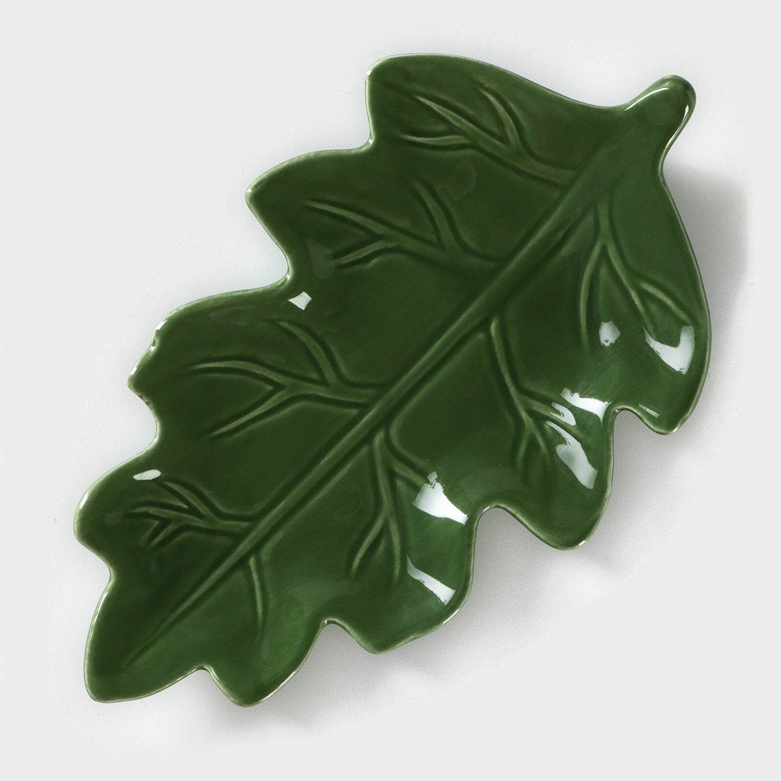 Купить Набор для специй Доляна "Лист", 3 предмета: солонка 80 мл, перечница 80 мл, подставка, цвет зеленый
