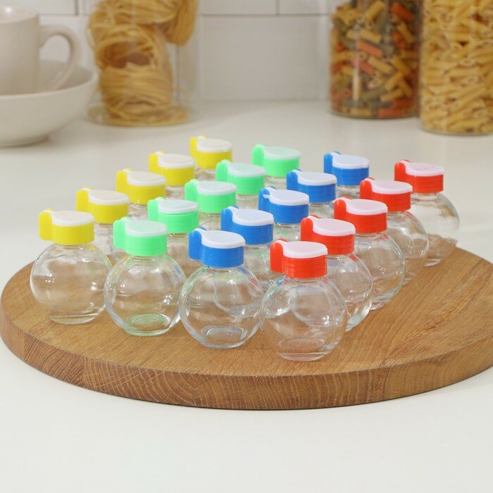 Купить Набор стеклянных солонок Доляна «Шар», 60 мл, 5×7 см, 20 предметов, цвет микс