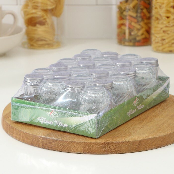 Набор стеклянных баночек для специй с металлической крышкой "Эко", 120 мл, 4,5х10,5 см, 12 шт