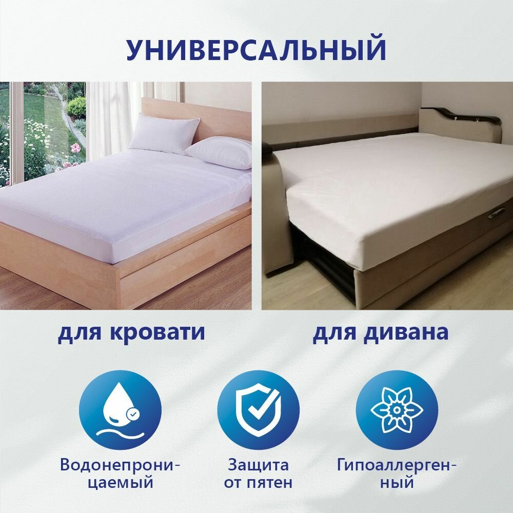 Наматрасник 140х190 см,защитный водонепроницаемый Мулетон-Аквастоп, с бортом м/ф 25 см. Чехол на матрас натяжной, махровый, с резинкой по периметру