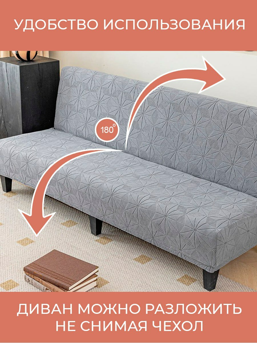 Чехол на трехместный диван без подлокотников , цвет серый интересное: