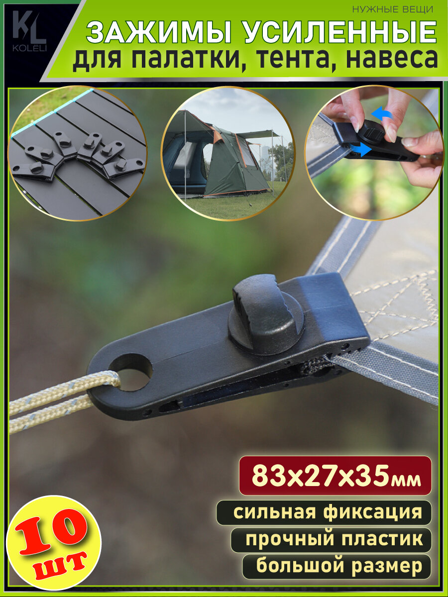 KoLeli / Зажимы усиленные "крокодильчик" / Комплект зажимов для брезента, для установки палатки, тента, 10 шт. интересное: