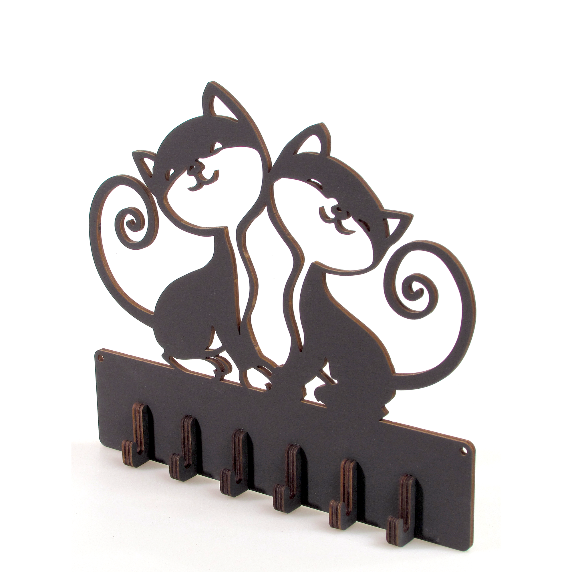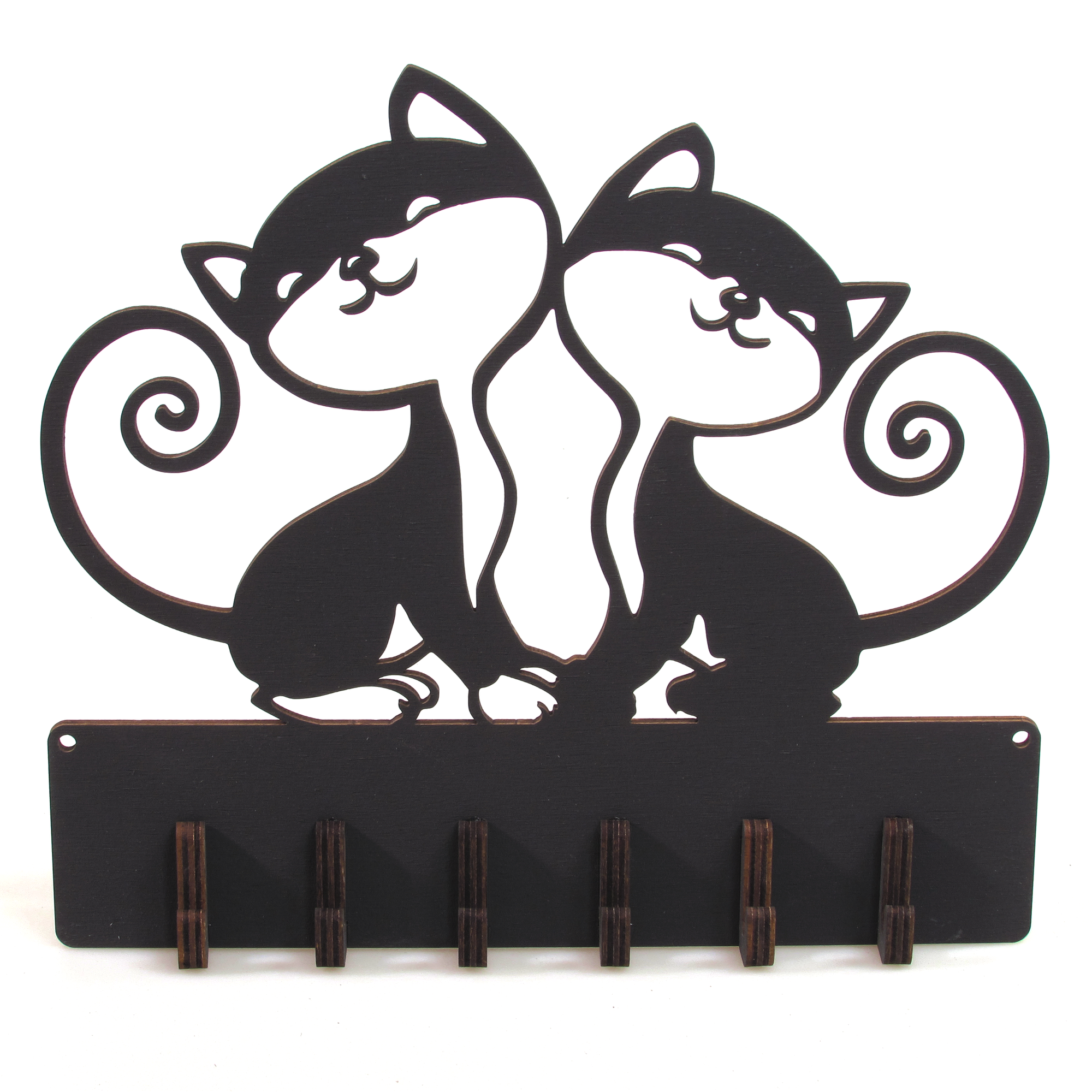 Ключница настенная DOMNATURE "Котики", черная, деревянная, 6 крючков, 21x19 см интересное:
