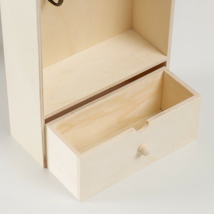 Купить Ключница настенная с ящичком «Прямоугольная», дерево, 2 крючка, заготовка для творчества, 18.5×7×25 см