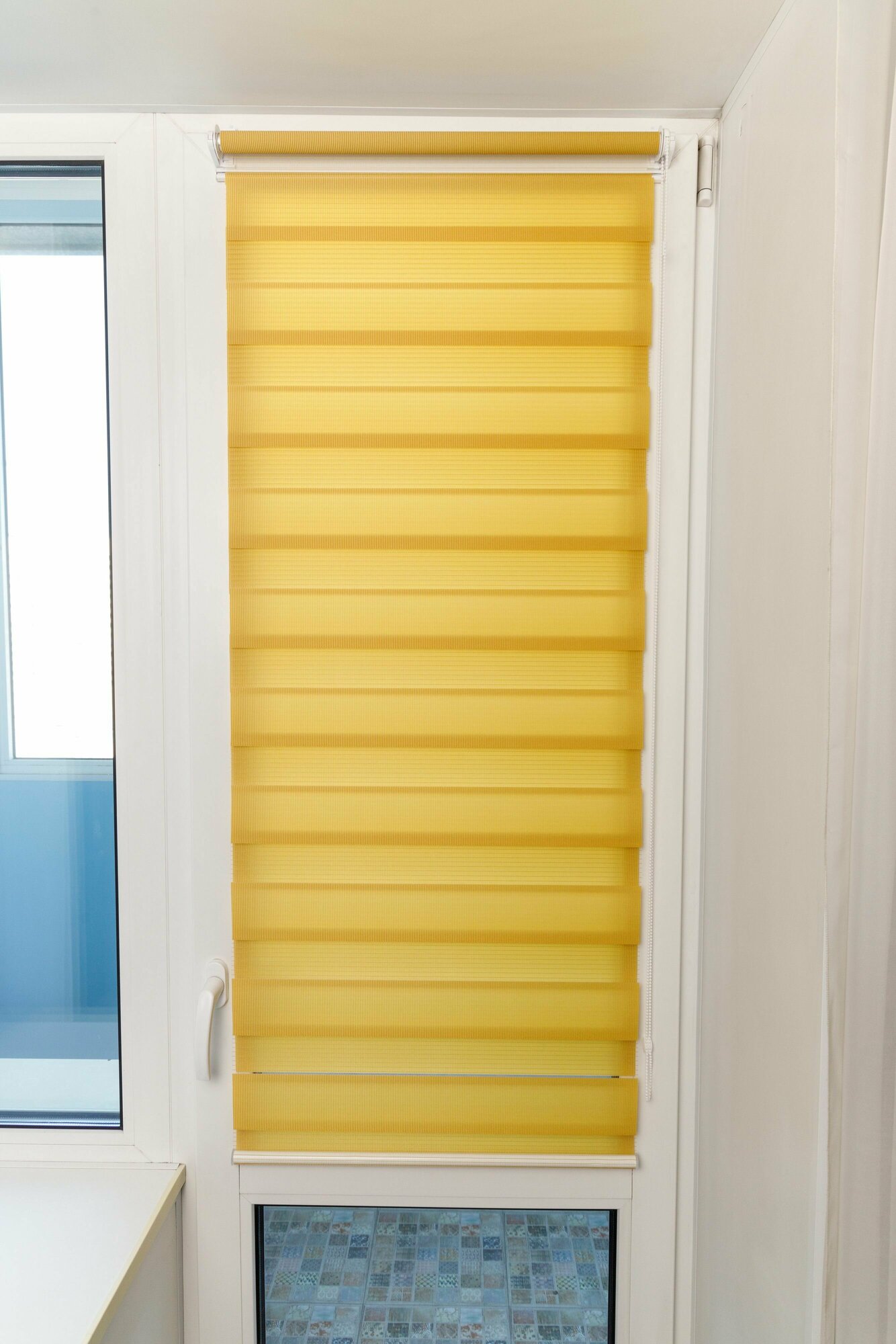 Рулонные шторы день ночь ширина 90, высота 220 см, желтые жалюзи на окна Зебра для кухни, спальни, детской, на балкон