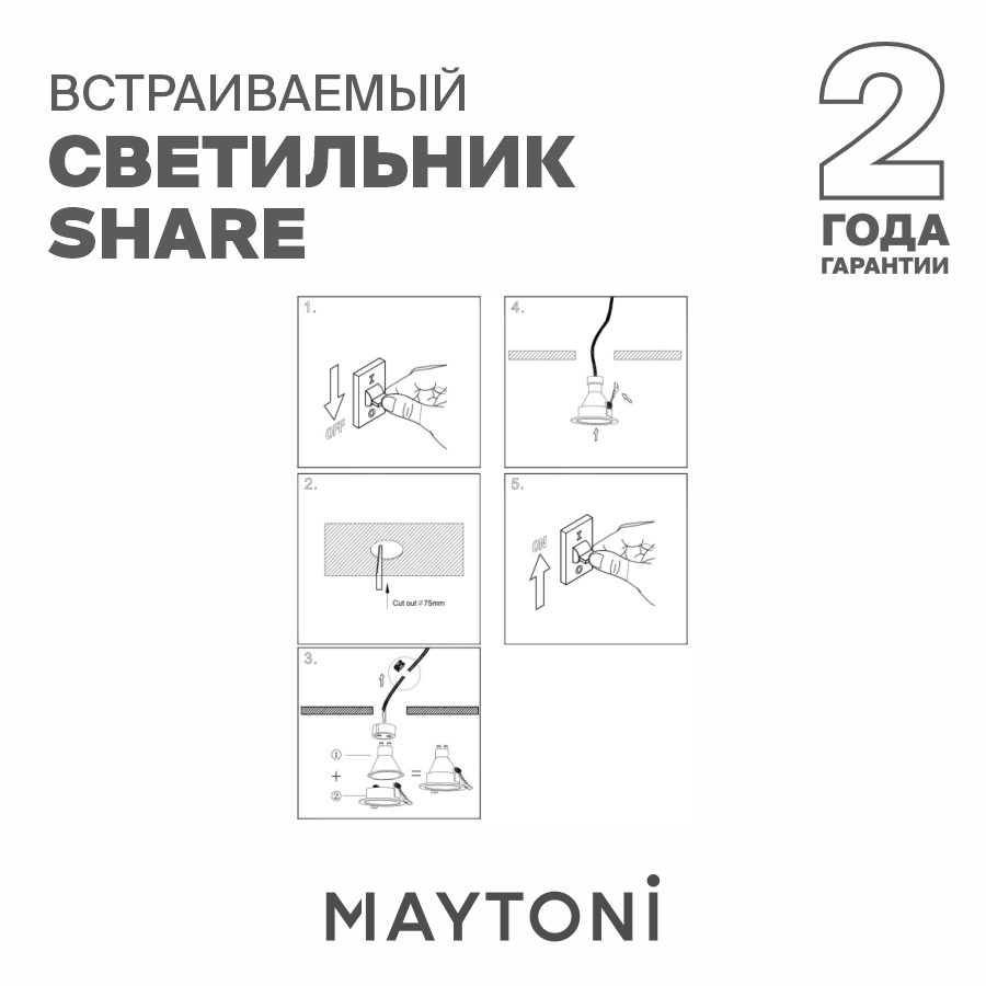 Встраиваемый светильник Maytoni Share DL051-U-1B, GU10, кол-во ламп:1шт, Черный