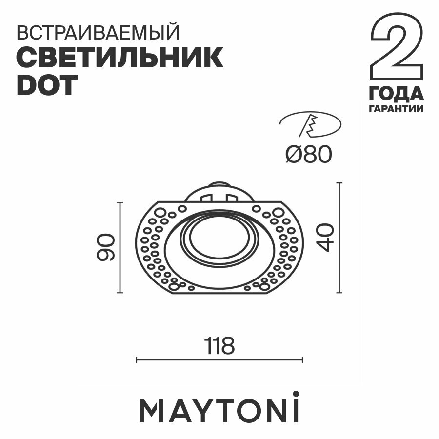 Встраиваемый светильник Maytoni Stark DL083-01-GU10-RD-W, GU10, кол-во ламп:1шт, Белый