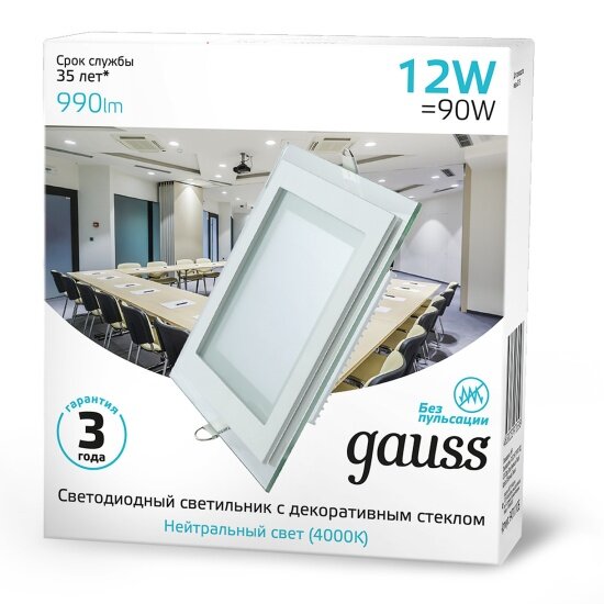 Купить Встраиваемый светильник Gauss , квадратный с декоративным стеклом, 12W 4000K 1/40