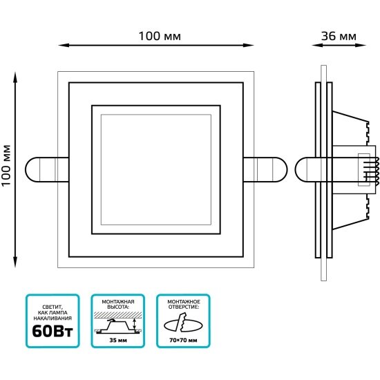 СохранитьВстраиваемый светильник Gauss , квадратный с декоративным стеклом, 6W 4000K 1/40 интересное: