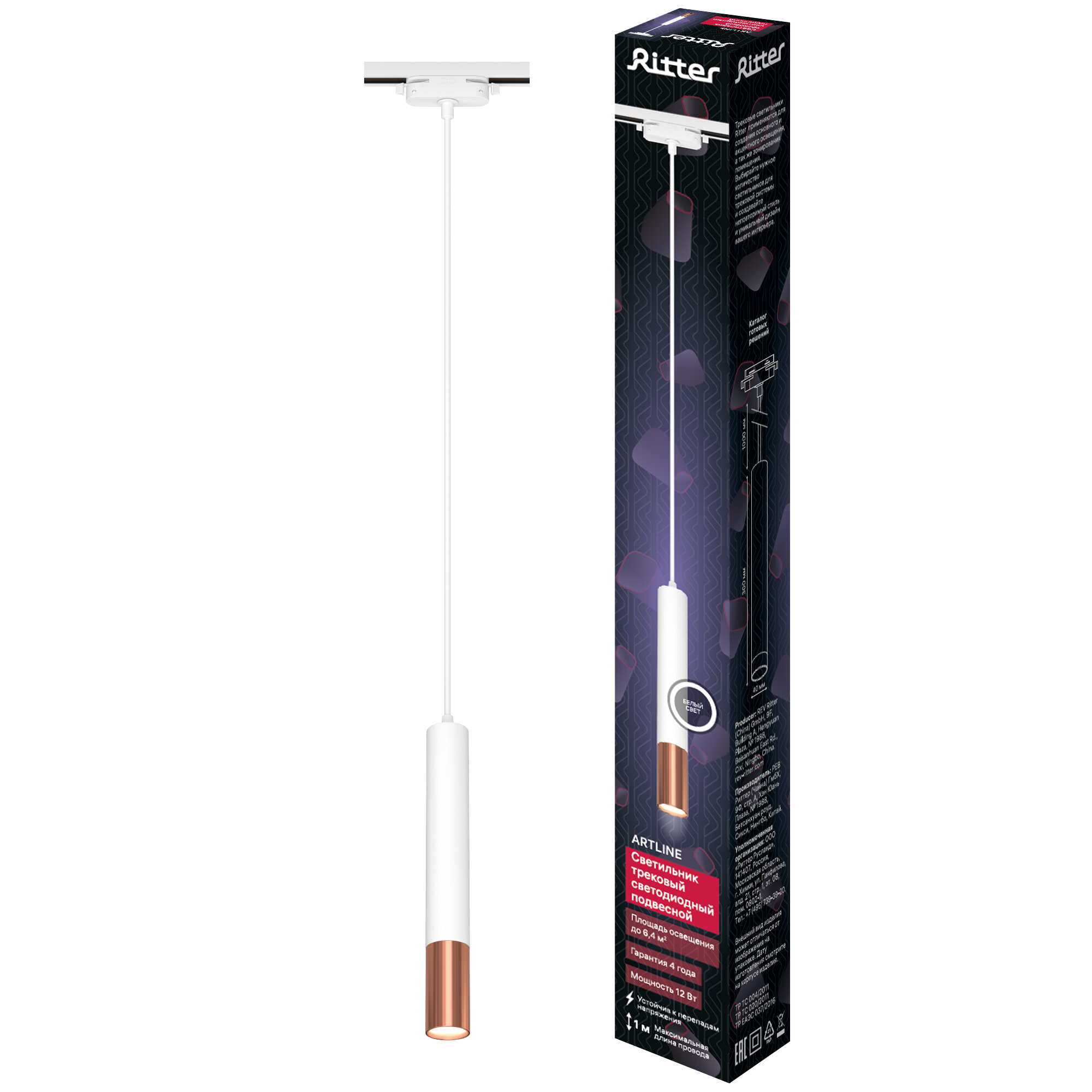 Светильник трековый потолочный подвесной светодиодный однофазный белый с золотым, 12Вт, крепление на любой шинопровод 220В, Ritter ARTLINE 59710 4