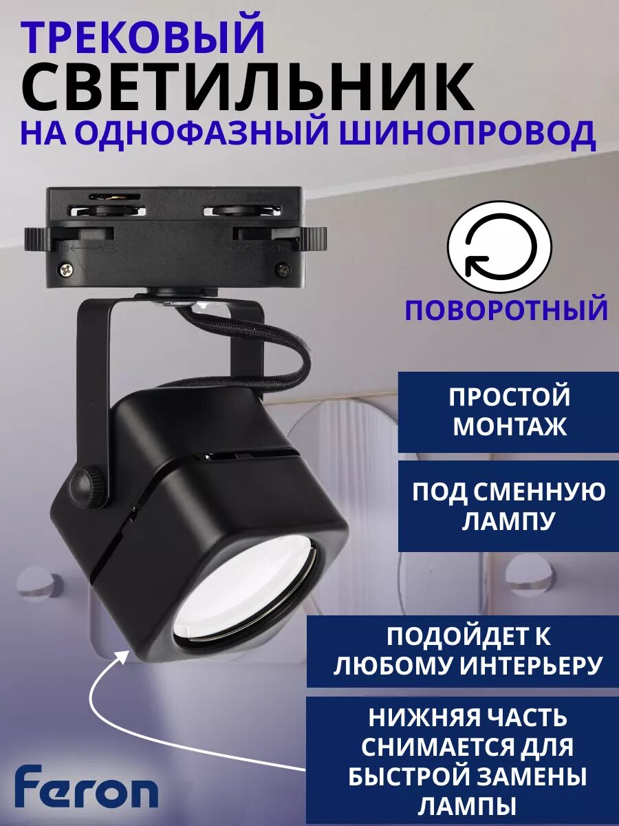 Купить Трековый светильник FERON AL190, однофазный на шинопровод, под лампу GU10, поворотный, черный