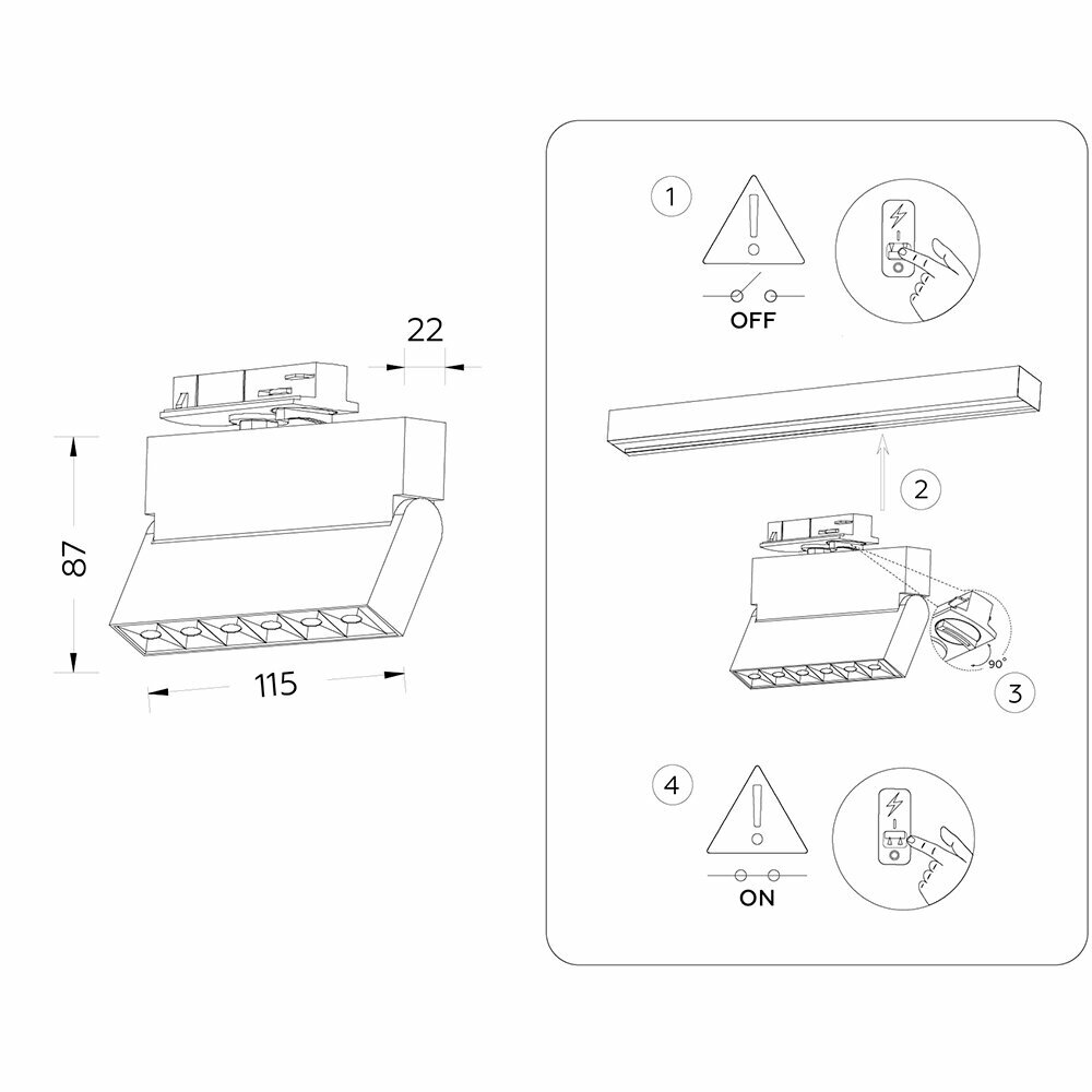 Трековый светодиодный светильник для Магнитных шинопроводов LED 6W 4200K 48V 24 115*22*45, черный