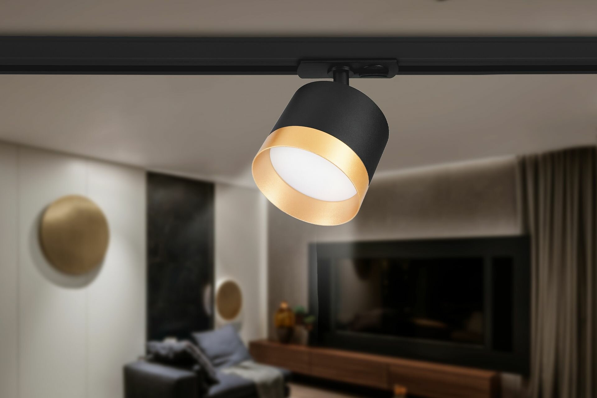Трековый однофазный светильник со сменной лампой GL5162 BK/GD черный/золото GU10 max 12W D60*190