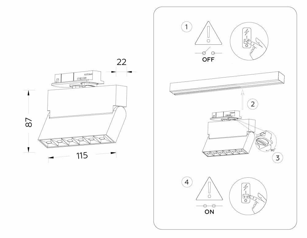 Трековый светодиодный светильник для Магнитных шинопроводов LED 6W 4200K 48V 24 115*22*45, черный