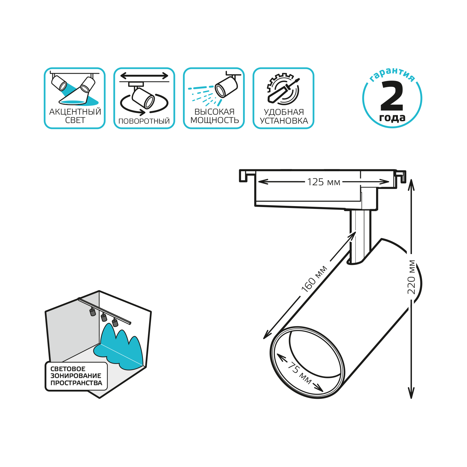 | Дополнительная информация | поворотный светильник, однофазная система |