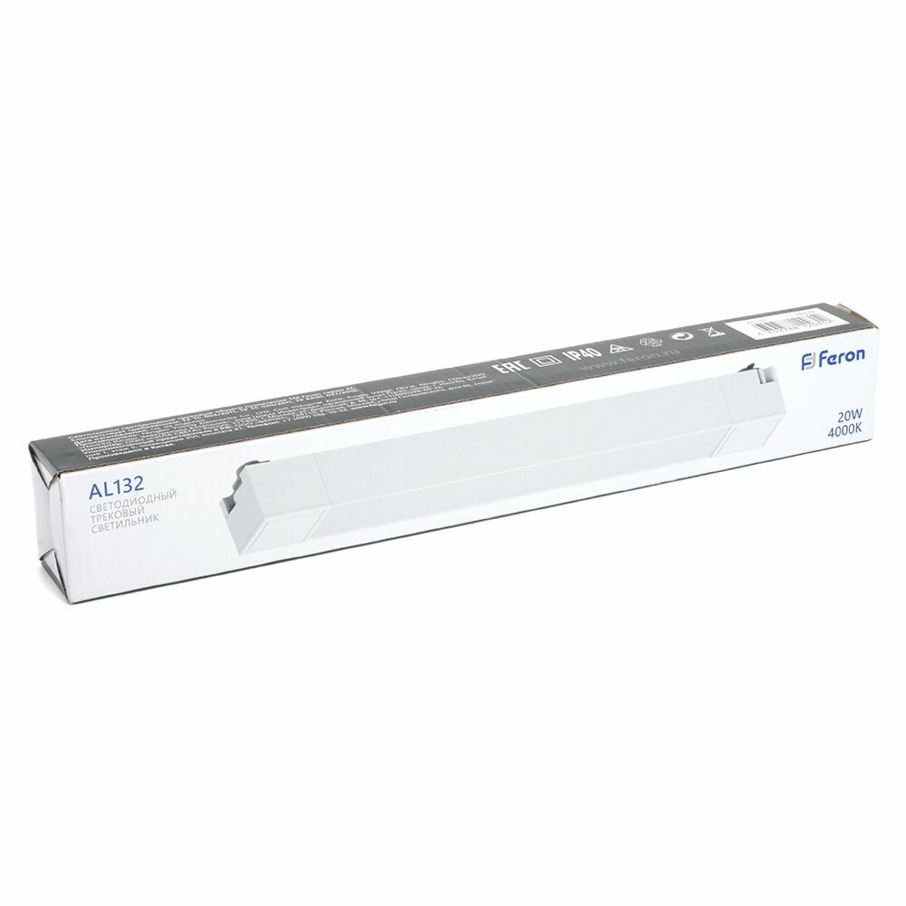 Светильник светодиодный трековый, 20W, 4000K (белый), 120 градусов, черный, AL132 Feron