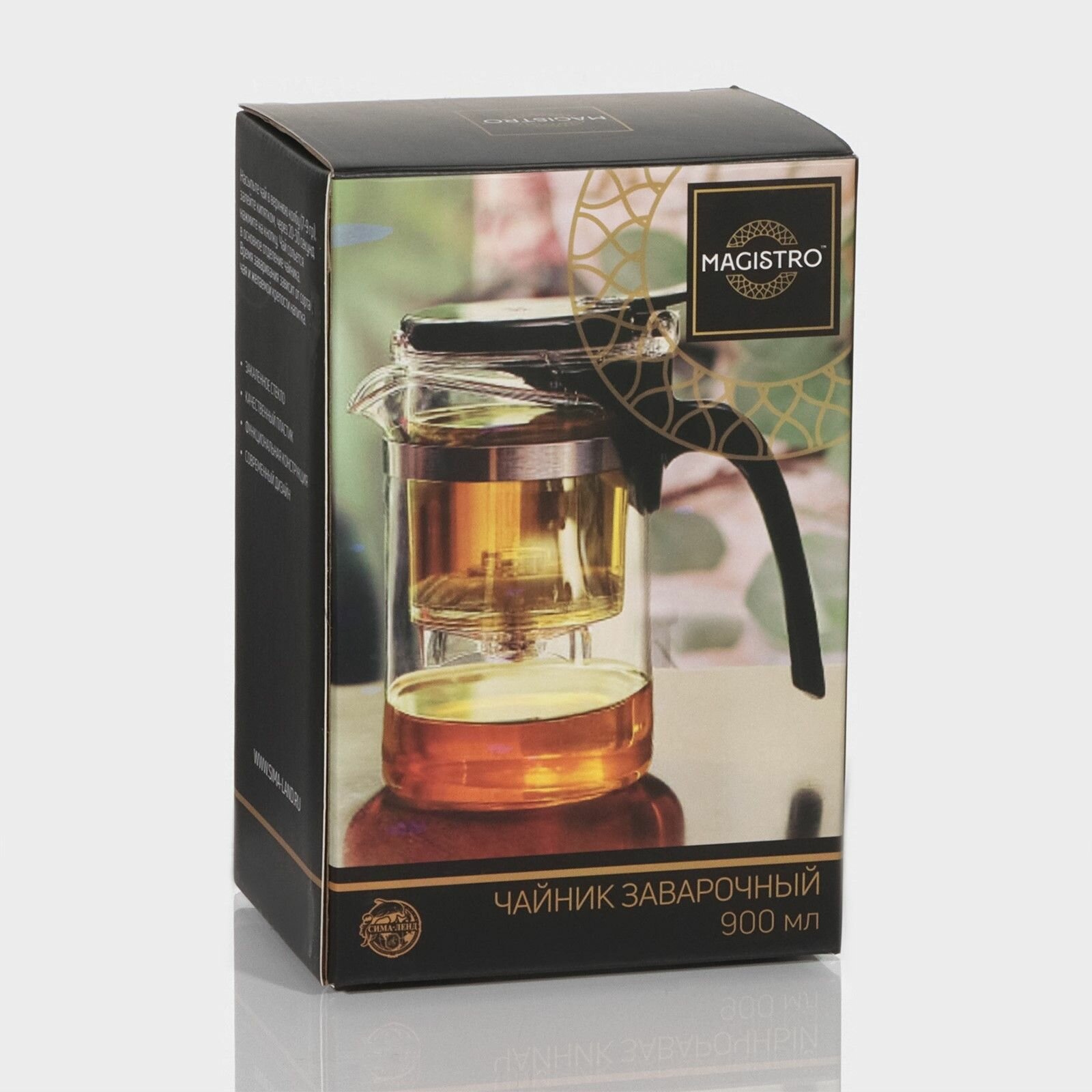 Чайник стеклянный заварочный Magistro «Шейди», 750 мл, с металлическим ситом, пластиковая колба