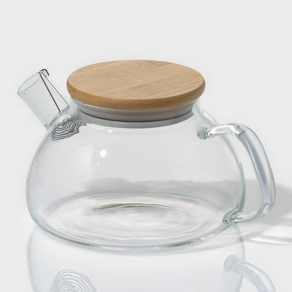Купить Заварочный чайник "Эко", 600 мл, 18x12x10 см, с бамбуковой крышкой, металлический фильтр, стекло
