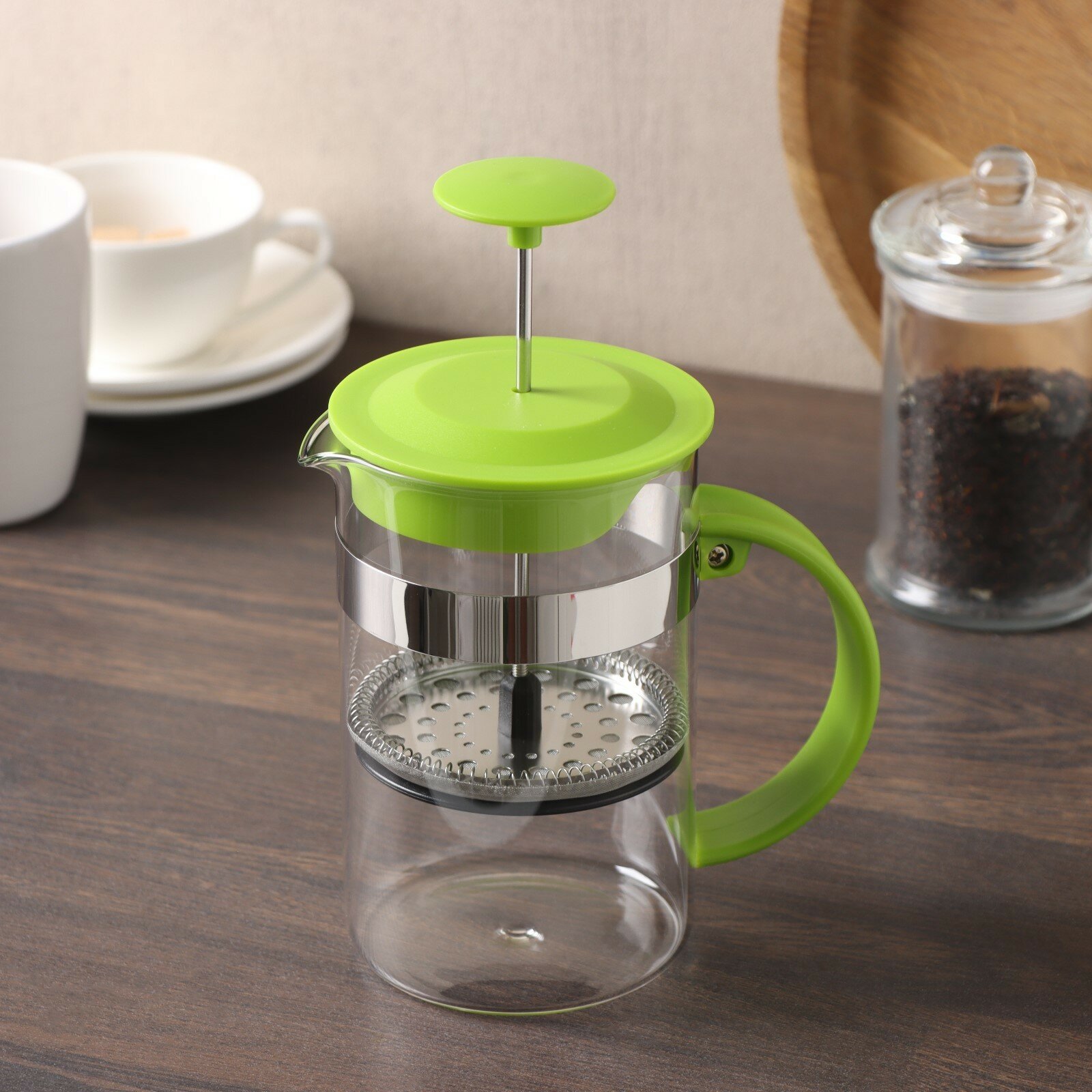 Купить Чайник заварочный френч - пресс Доляна «Гарсон», 800 мл, стекло, цвет зелёный
