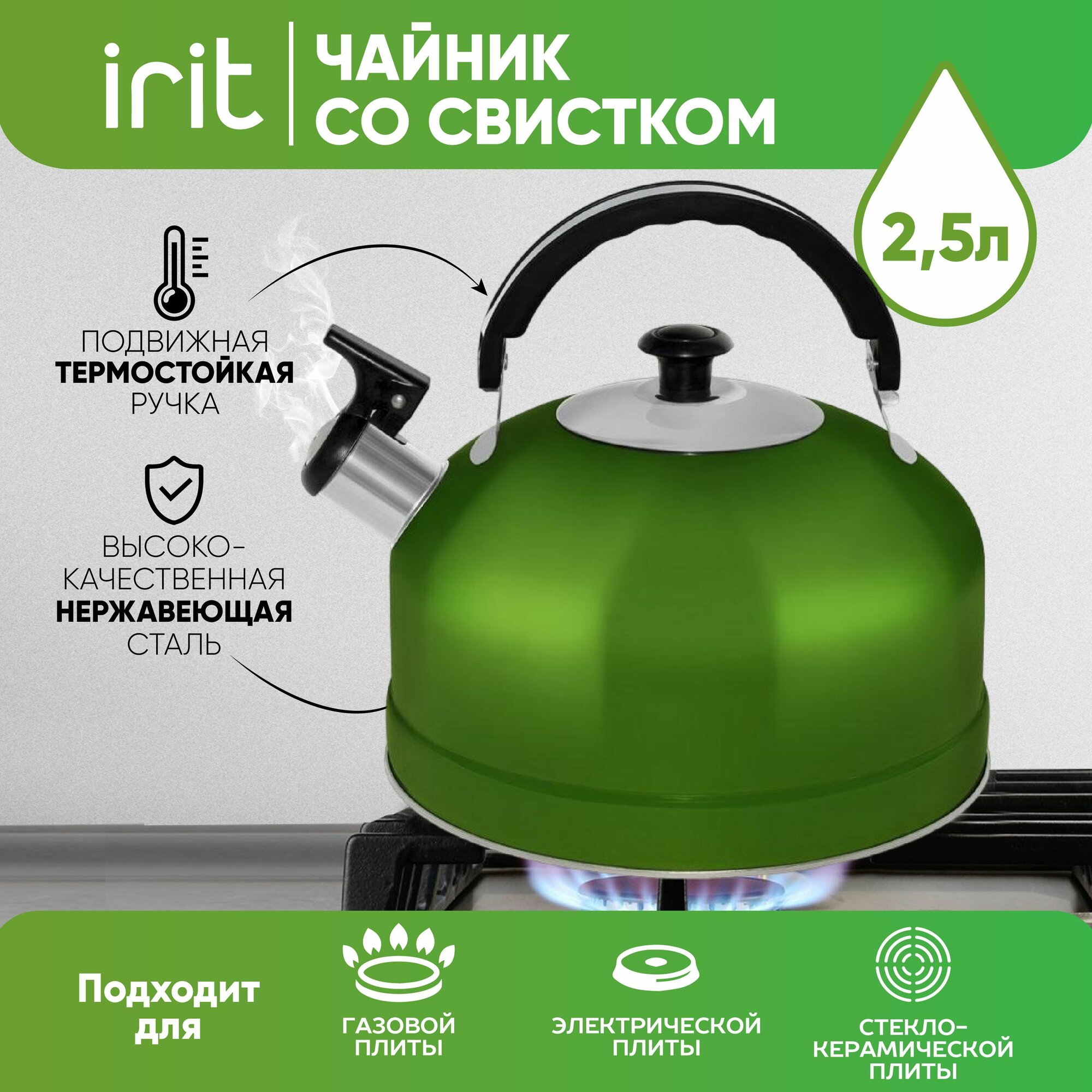 Чайник Irit IRH-413 со свистком, зеленый, 2.5 литра, для газовых плит