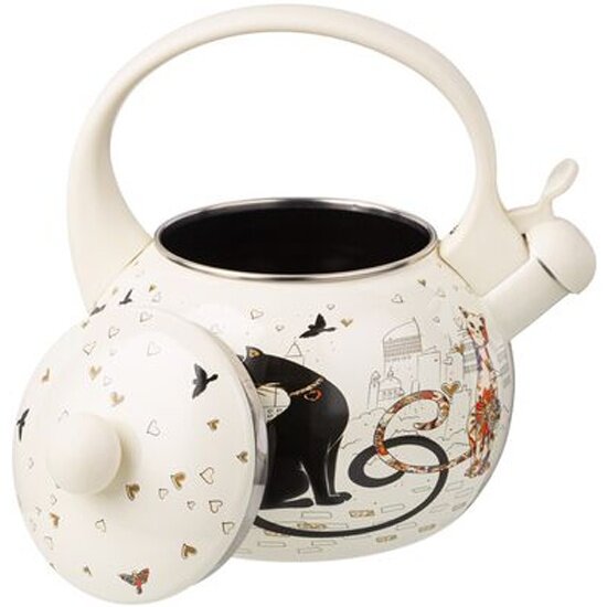 Чайник Agness эмалированный со свистком, серия "парижские коты" 2,2 л., индукционное дно