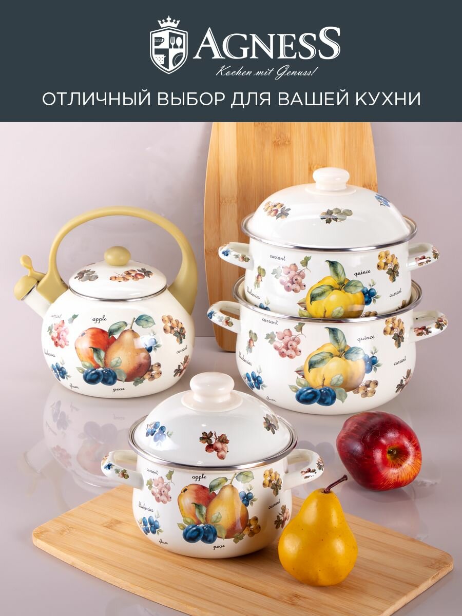 Купить Чайник Agness "Фрукты", эмалированный, со свистком, 2,2 л, для всех видов плит