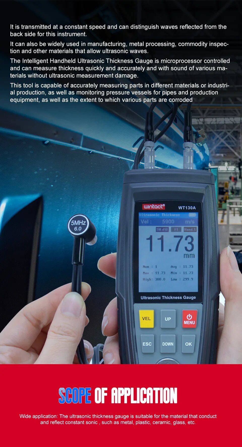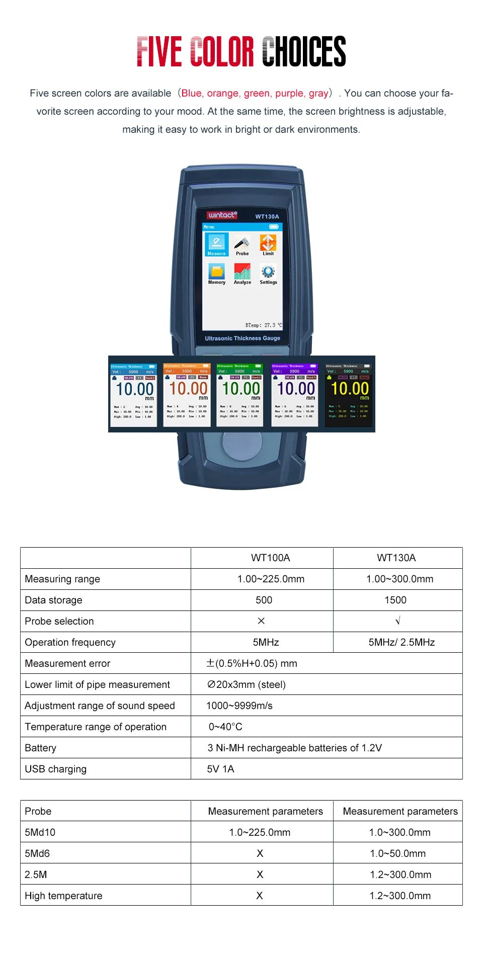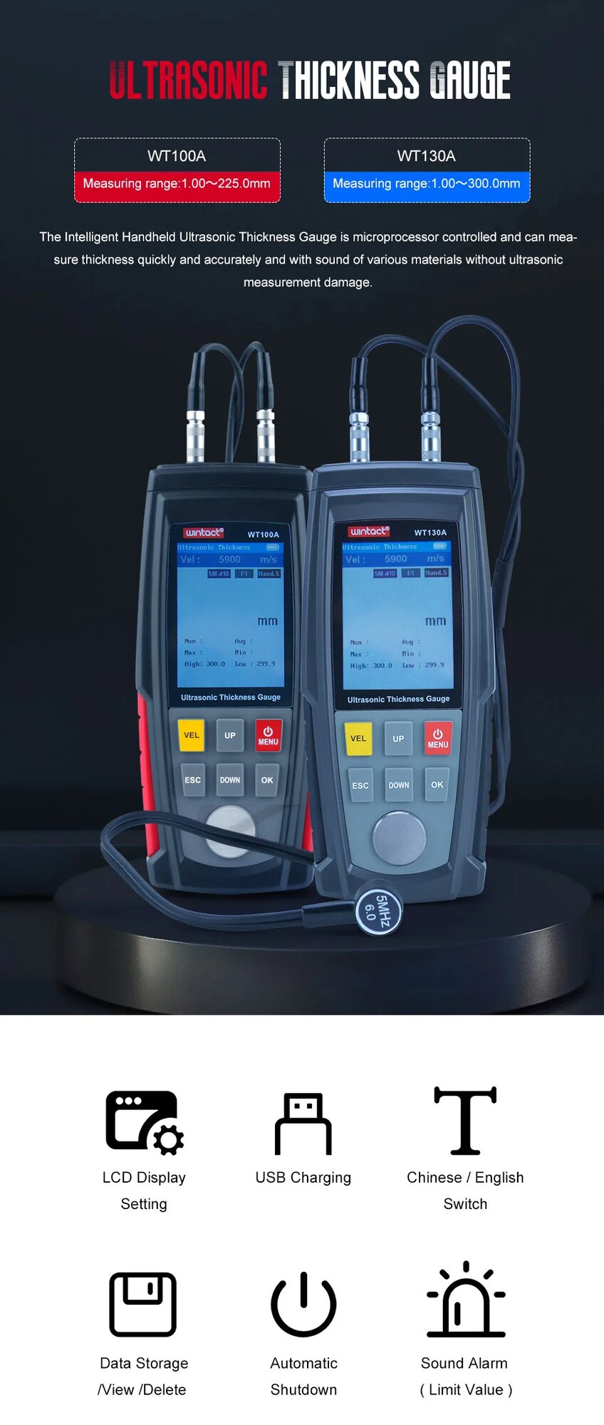 OUTEST Цифровой ультразвуковой толщиномер WT130A/WT100A, WT100A интересное: