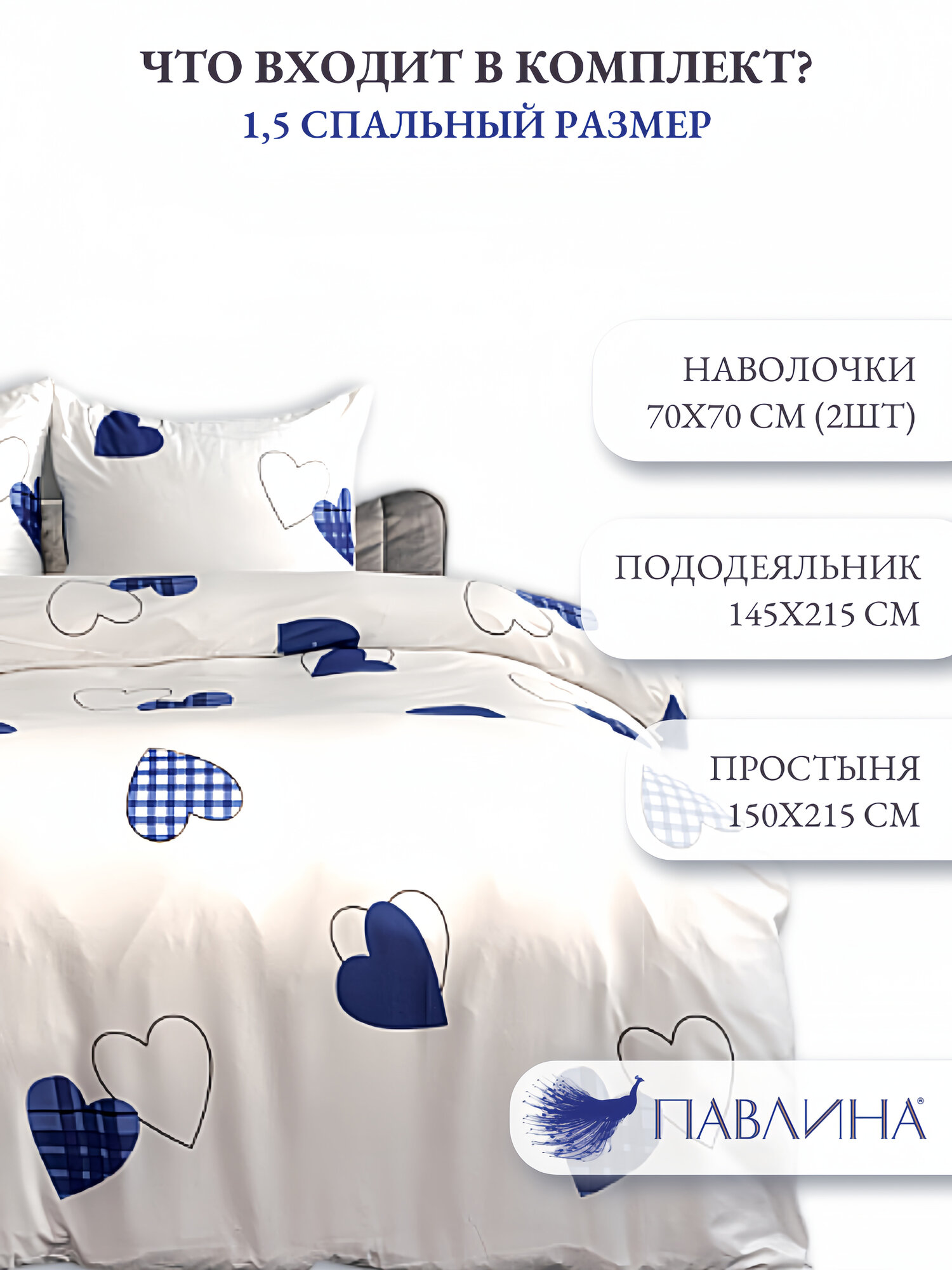 Постельное белье 1.5 спальное Павлина 251 Сердце, Полисатин, наволочки 70x70 интересное: