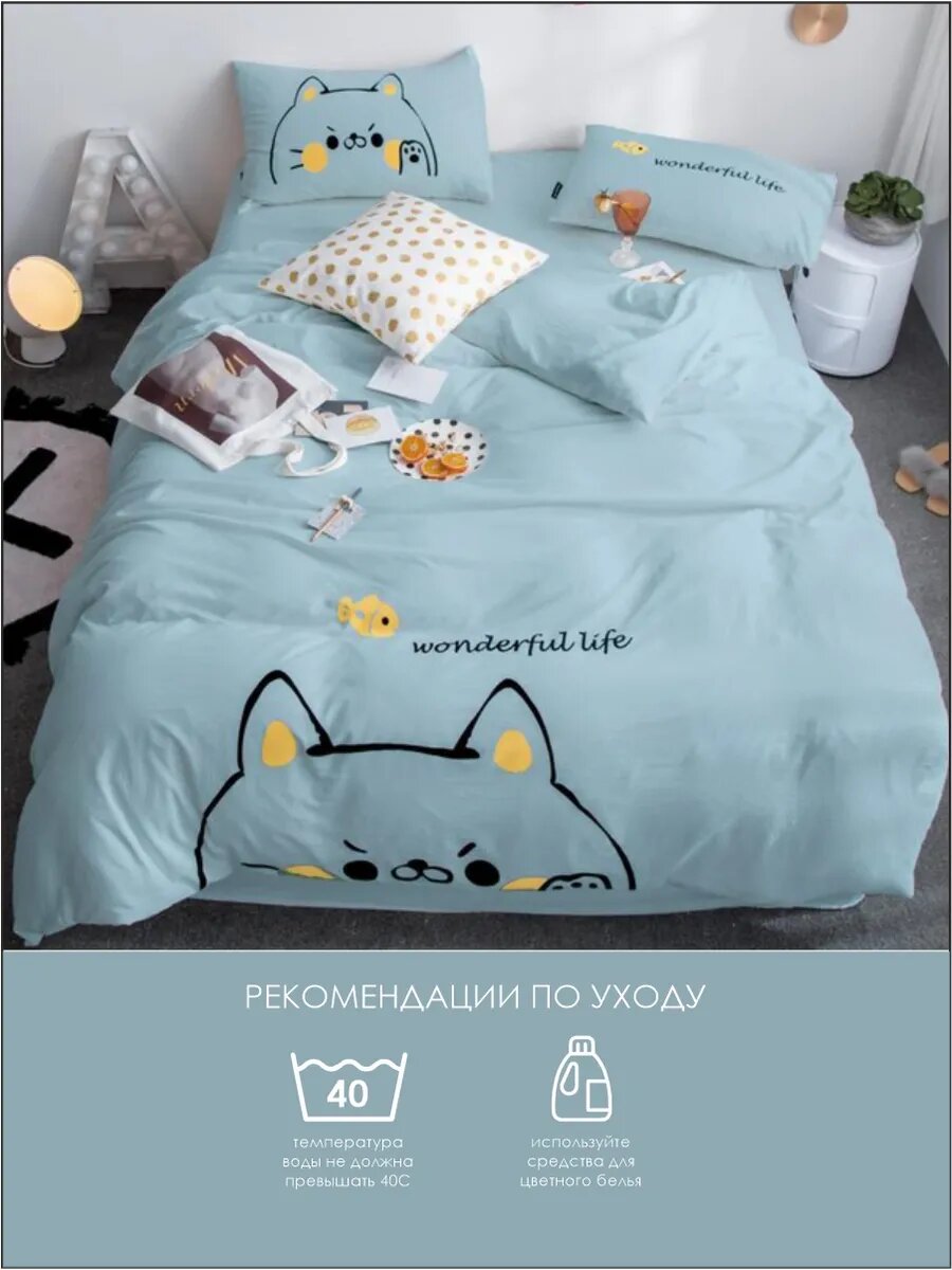 Детское постельное белье Mency 1,5 спальное сатин наволочка 50x70 голубой цвет