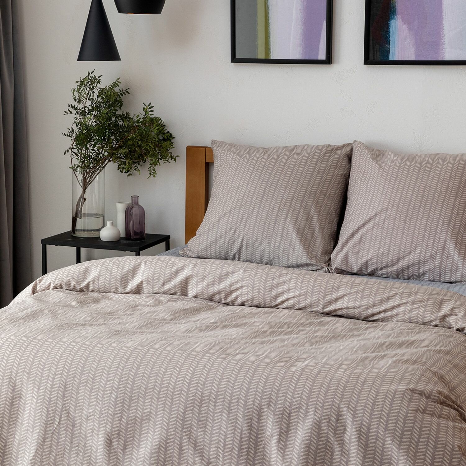 Cozy Home Комплект постельного белья, Поплин, 1,5 спальный, нав. 50х70, Gustavo, бежевый