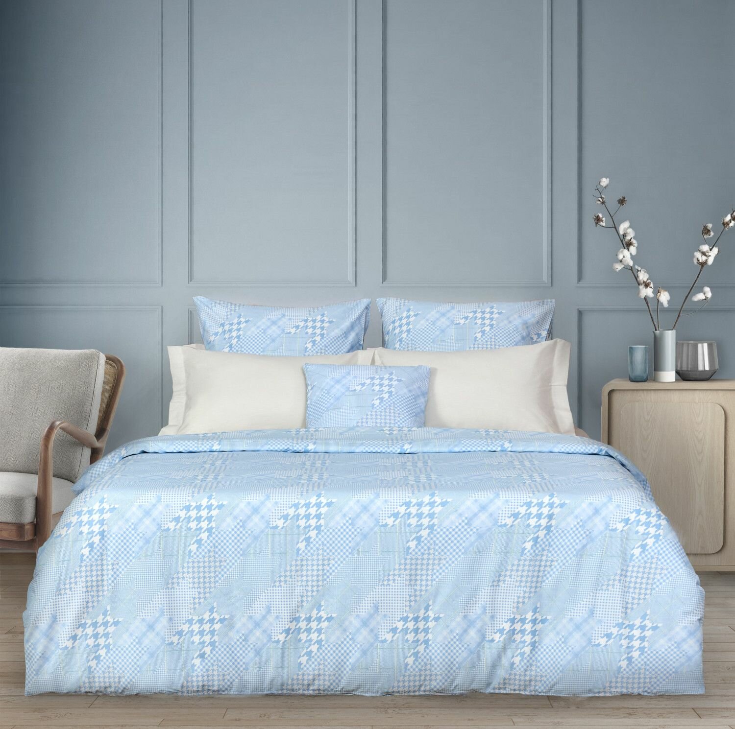Cozy Home Комплект постельного белья, Поплин, Евро, нав. 50х70, Modico Blue II