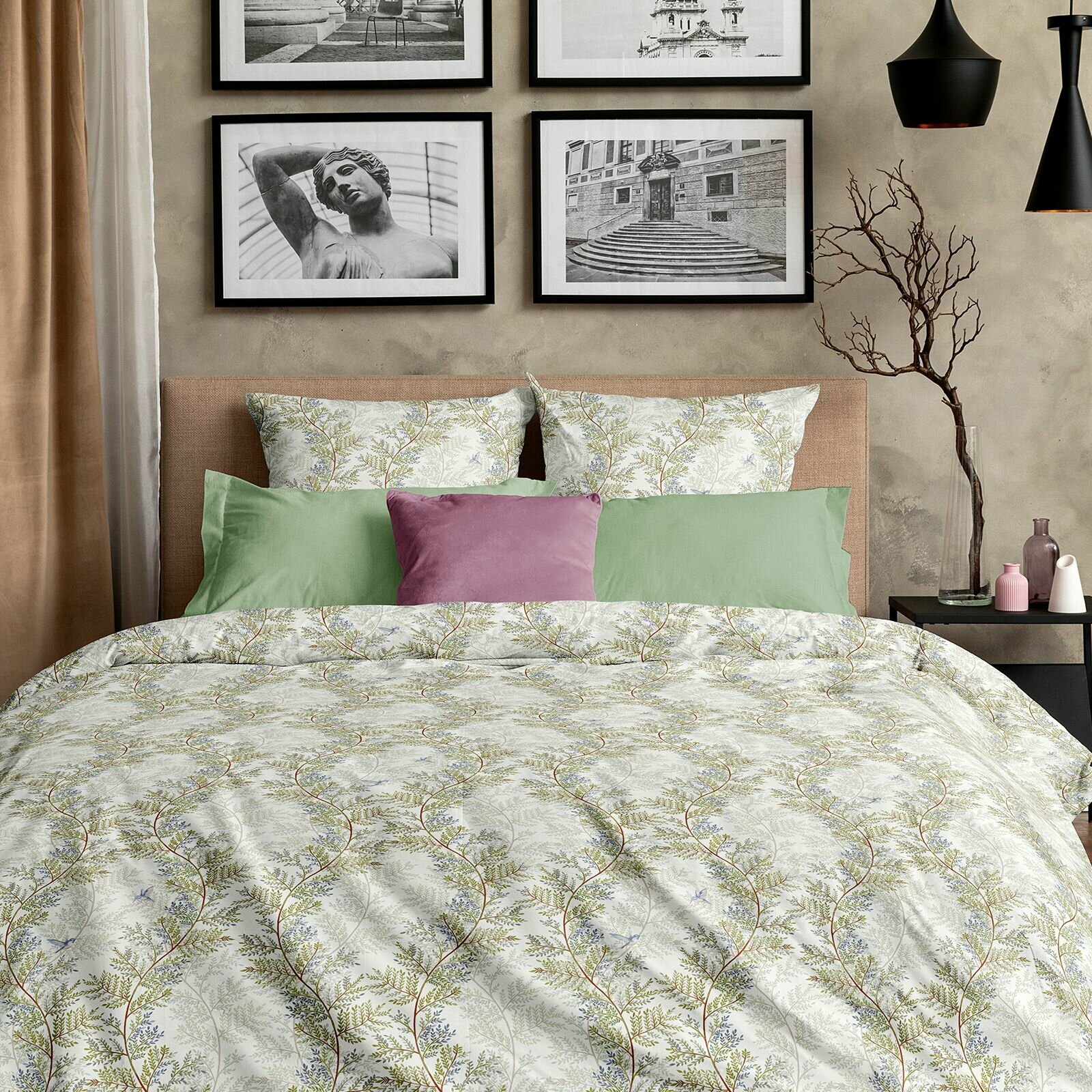 Cozy Home Комплект постельного белья, Поплин, 2-x спальный, нав. 50х70, Modico Green II