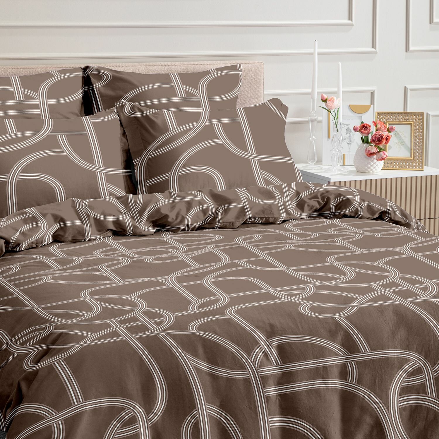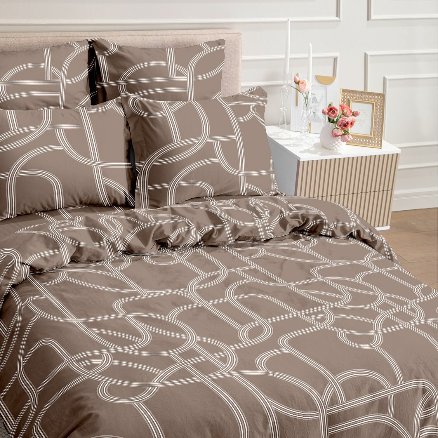 Cozy Home Комплект постельного белья, Поплин, 1,5 спальный, нав. 50х70, Gustavo, бежевый