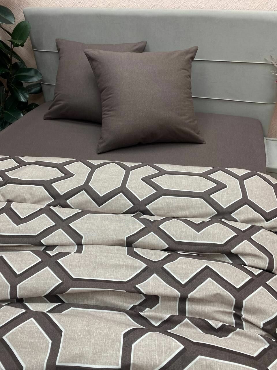 Постельное белье Kerimov GROUP, 1,5-спальное, хлопок 100%, с молнией, бязь, цвет серый/розовый