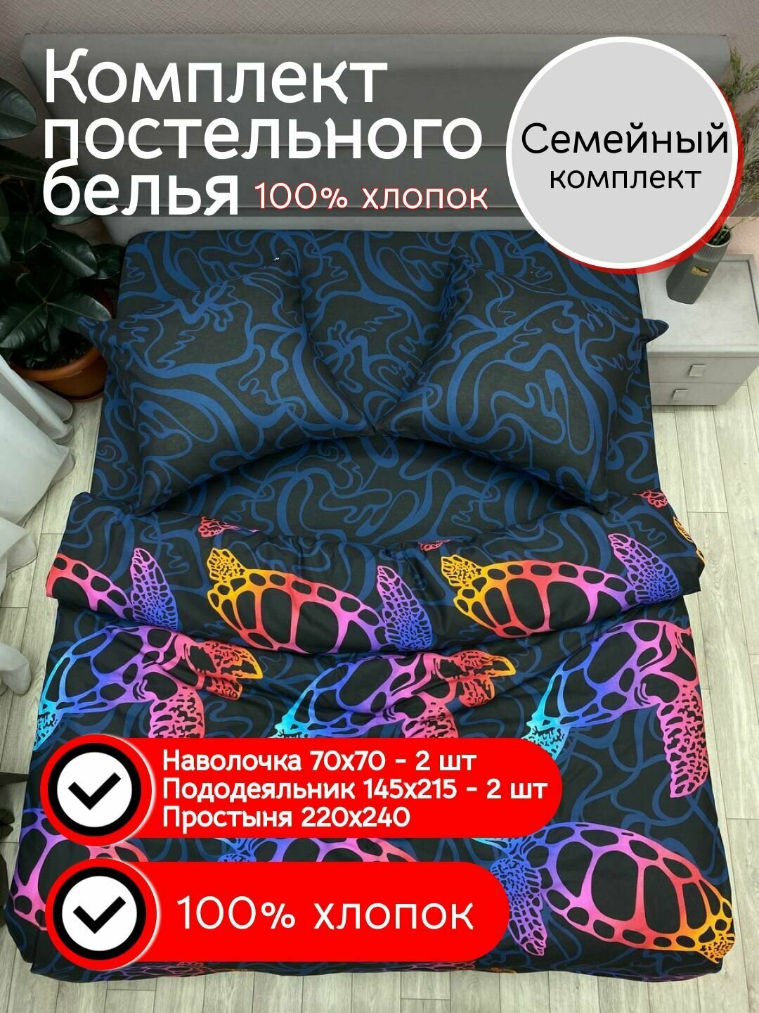 Постельное белье семейное Бязь