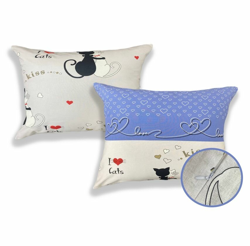 Наволочка 2шт на молнии 70х70 см Сказка "Kitties", ткань перкаль, 100% хлопок