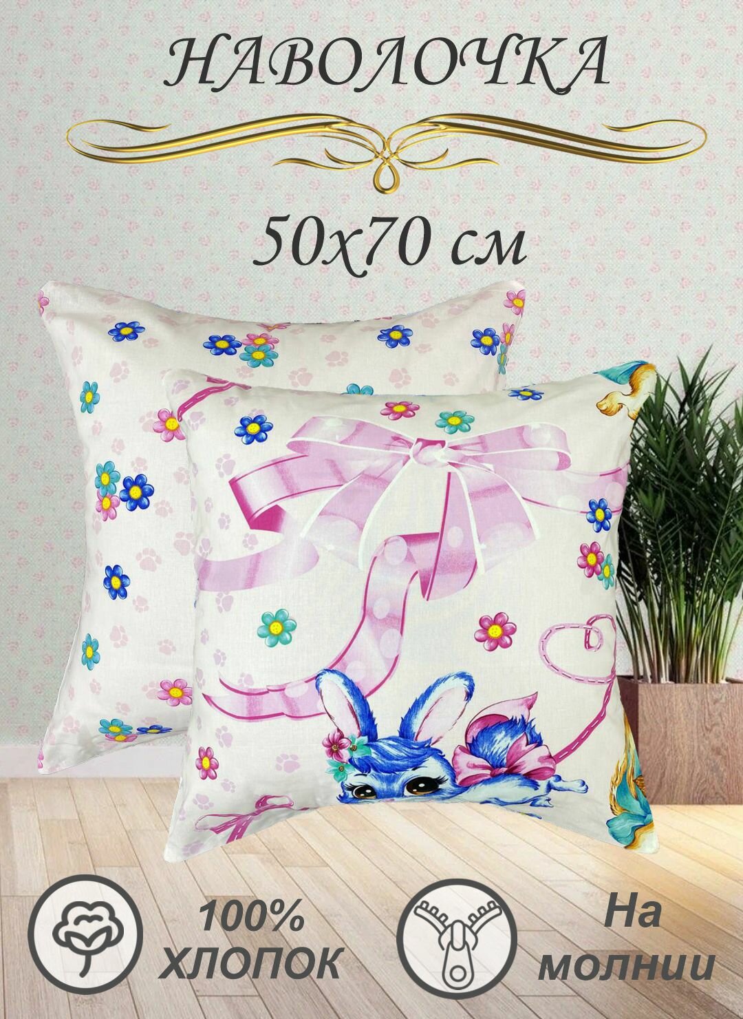 Наволочка 2шт на молнии 70х70 см Сказка "Kitties", ткань перкаль, 100% хлопок