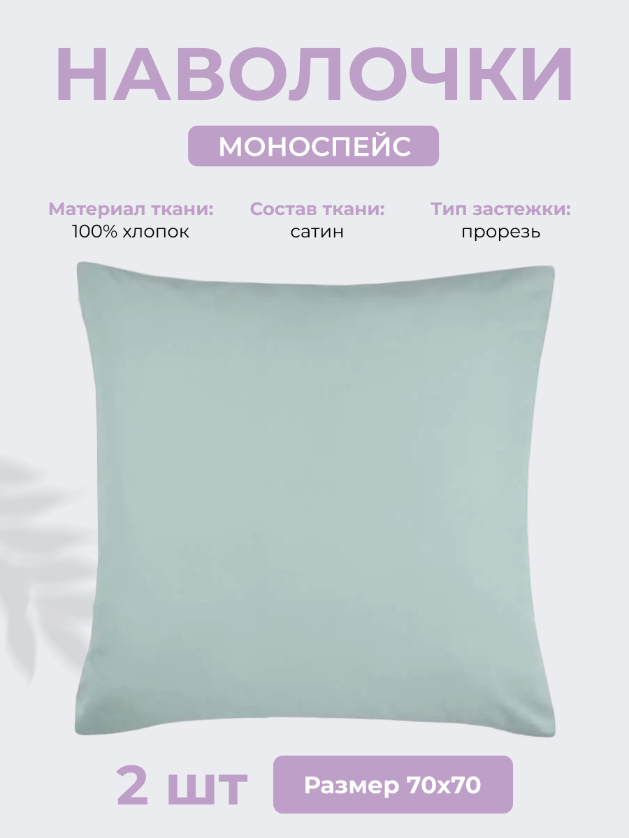 Наволочки 70х70 см Моноспейс, комплект из 2х шт, однотонные (аналог икеа), Зеленый, 100% хлопок, сатин, Ecotex