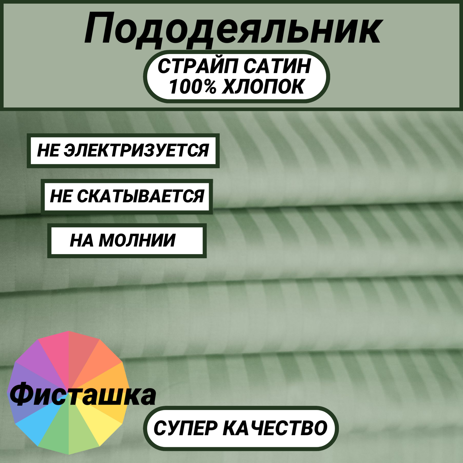 СохранитьПододеяльник 1.5 сп (150х215) на молнии страйп сатин Фисташка СПАЛЕНКА78 хлопок 100% полоса 1х1 интересное: