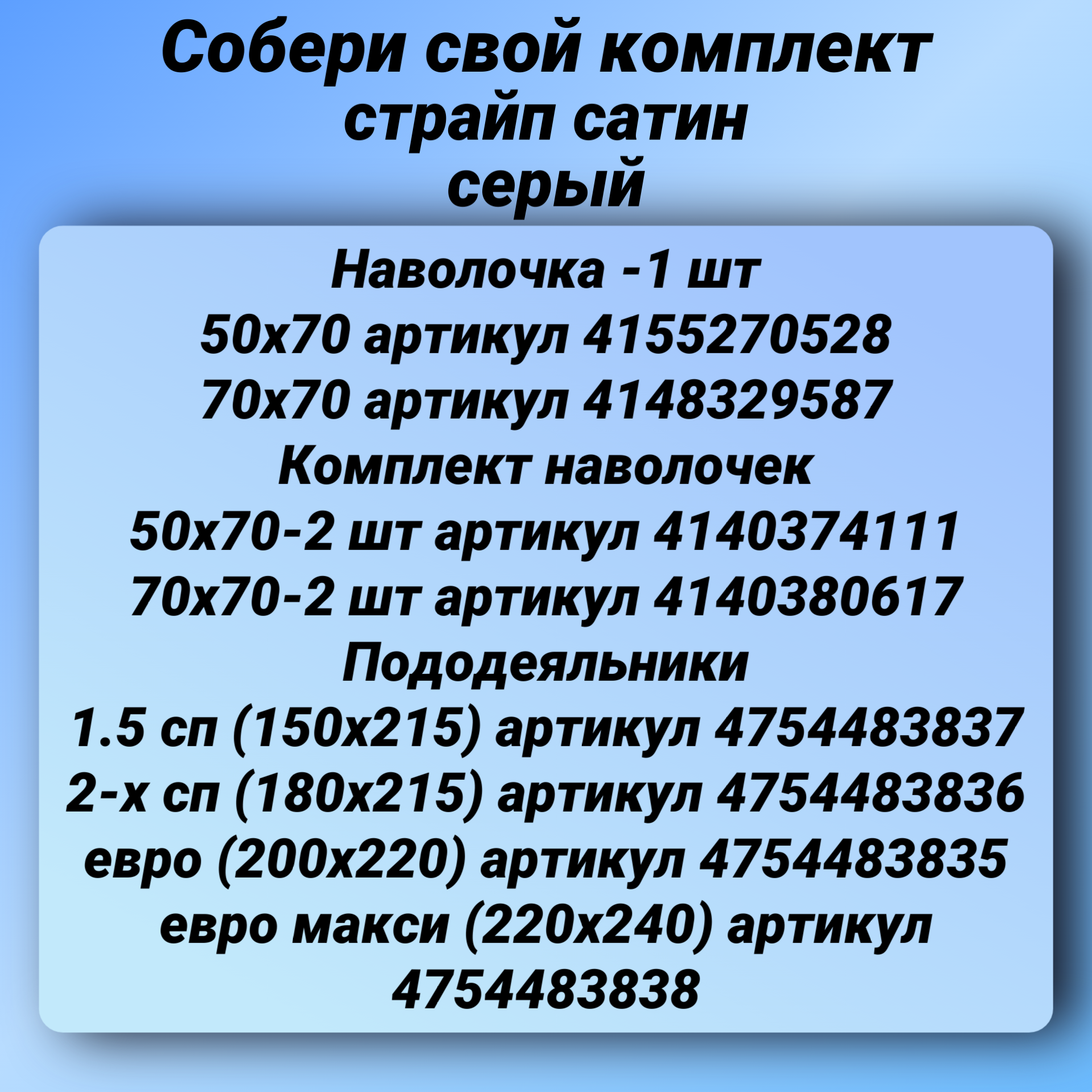 СохранитьПододеяльник евро (200х220) на молнии страйп сатин серый СПАЛЕНКА78 хлопок 100% полоса 1х1 интересное: