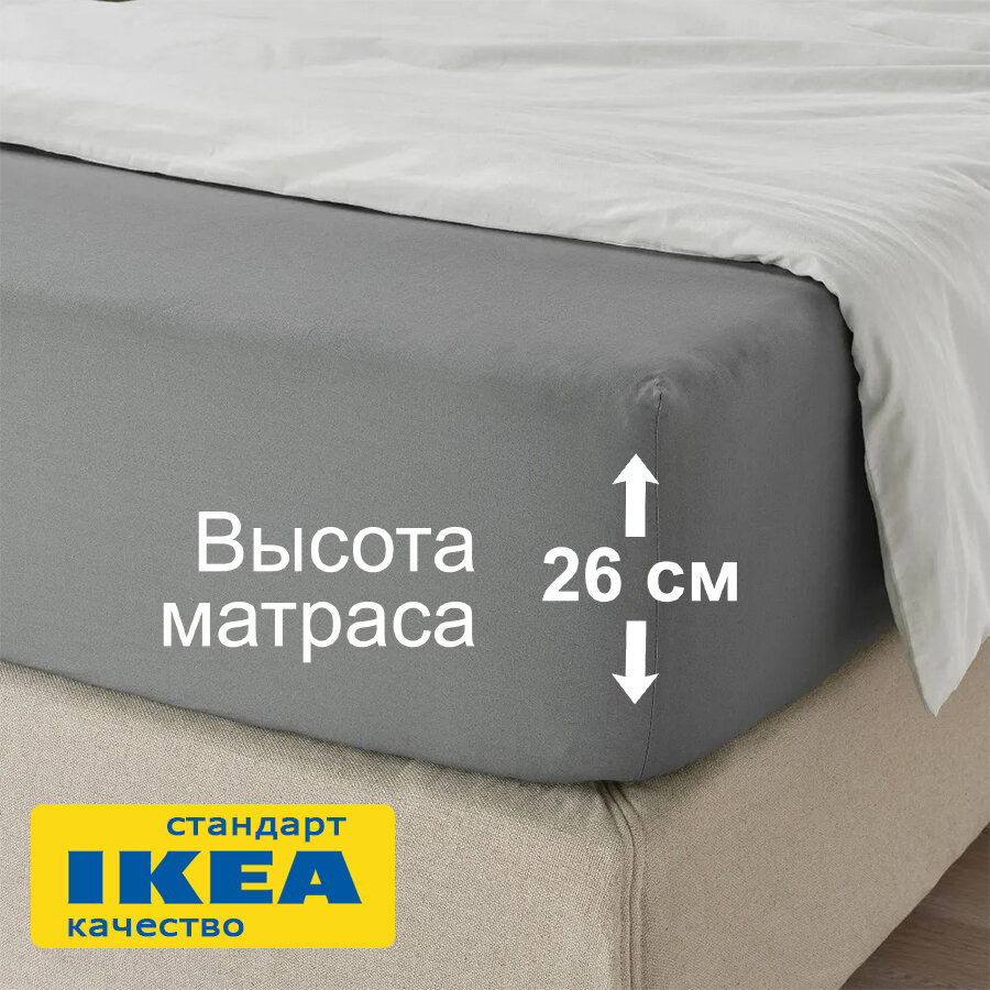 Простыня на резинке IKEA ULLVIDE, серая, 140x200 см