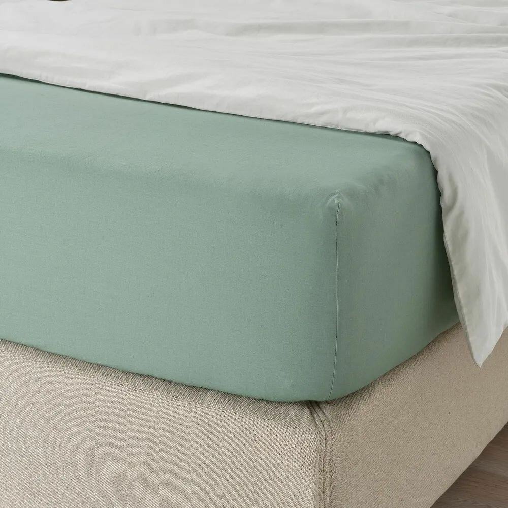 ULLVIDE Простынь на резинке 140x200 см IKEA, натяжная, серый/зеленый (90501719)