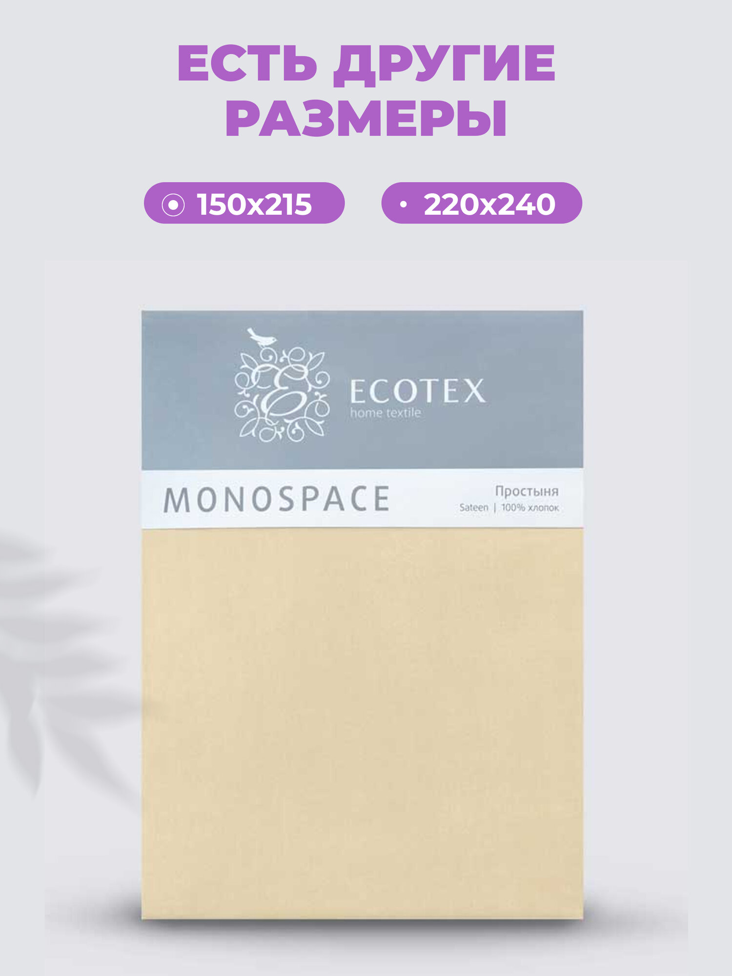 Простынь Ecotex "Моноспейс" 1,5-спальная (150х215 см), сатин - 100% хлопок, бежевый