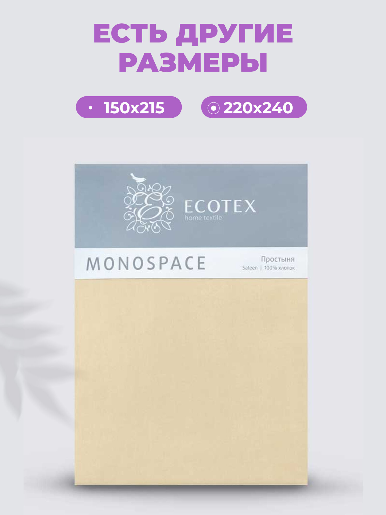 Простынь Ecotex "Моноспейс" Евро (220х240 см), сатин - 100% хлопок, бежевый