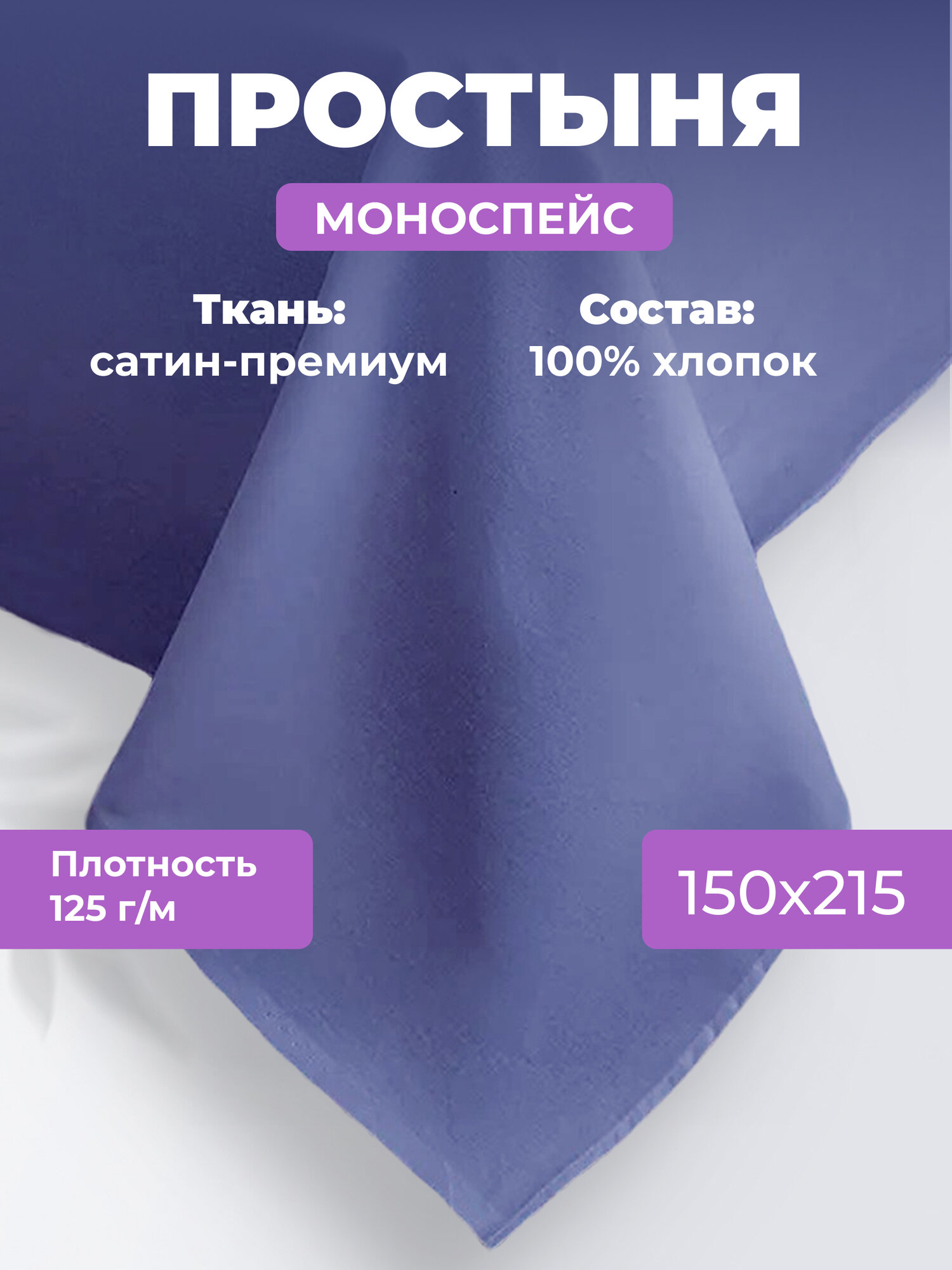 Простынь однотонная Моноспейс (аналог икеа), Бузина, 1,5 спальное, 150х215 ,100% хлопок, сатин, Ecotex